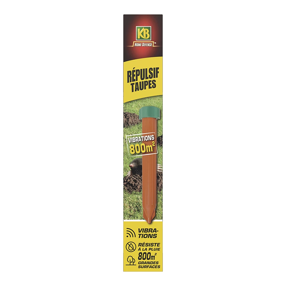 KB Mollenverjager en Woelmuizenverjager 800m² werkt op basis van infrasoon geluid. Infrasoon geluid bestaat uit zogeheten infrasone trillingen. Dit zijn geluidsgolven waarvan de frequentie zo laag ligt, dat mensen dit niet kunnen horen. Mollen en woelmuizen hebben daarentegen een extreem goed ontwikkeld gehoor en zijn zeer gevoelig voor trillingen in de bodem. Dit apparaat is meest effectief bij mollen en woelmuizen. Het apparaat produceert elke 30 seconden een vibrerend geluid dat zich door de grond verspreidt tot maximaal 800m² (diameter: ongeveer 35m) afhankelijk van de grondsoort, dichtheid en vochtigheid van de bodem. De infrasone trillingen zijn intimiderend voor knaagdieren, omdat ze deze associëren met een inkomende dreiging (zoals een naderend roofdier). Het apparaat is waterdicht, bevat geen chemicaliën, is veilig in gebruik en veilig voor kinderen en huisdieren.