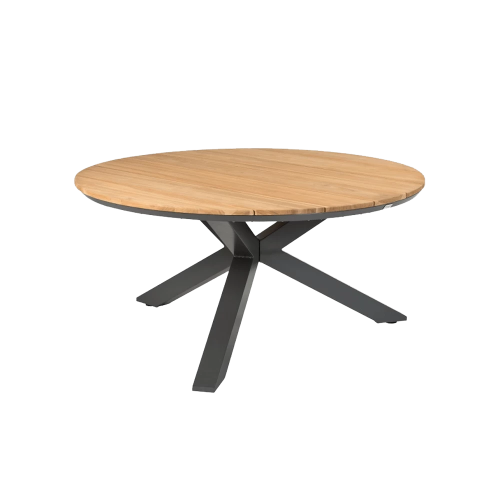 De Omnigo tafel heeft een blad met een diameter van 150cm, dit biedt zitplaatsruimte voor i.i.g. 6 personen en is 76cm hoog. De tafel is te demonteren waardoor het weinig ruimte nodig heeft bij het opbergen. De poten zijn voorzien van kunststof slijtdoppen waardoor ze geen krassen achterlaten op uw terras.